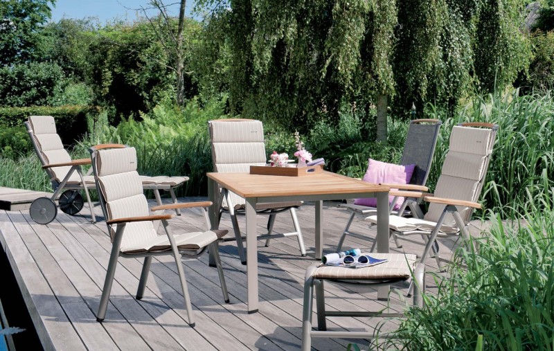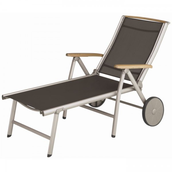 Лежак изготовлен из покрытого порошком алюминия, что обеспечивает его прочность и устойчивость к коррозии. Плетение Textilene® делает сиденье воздушным и приятным для кожи, а вставки из Teak придают лежаку элегантный вид и дополнительную прочность.